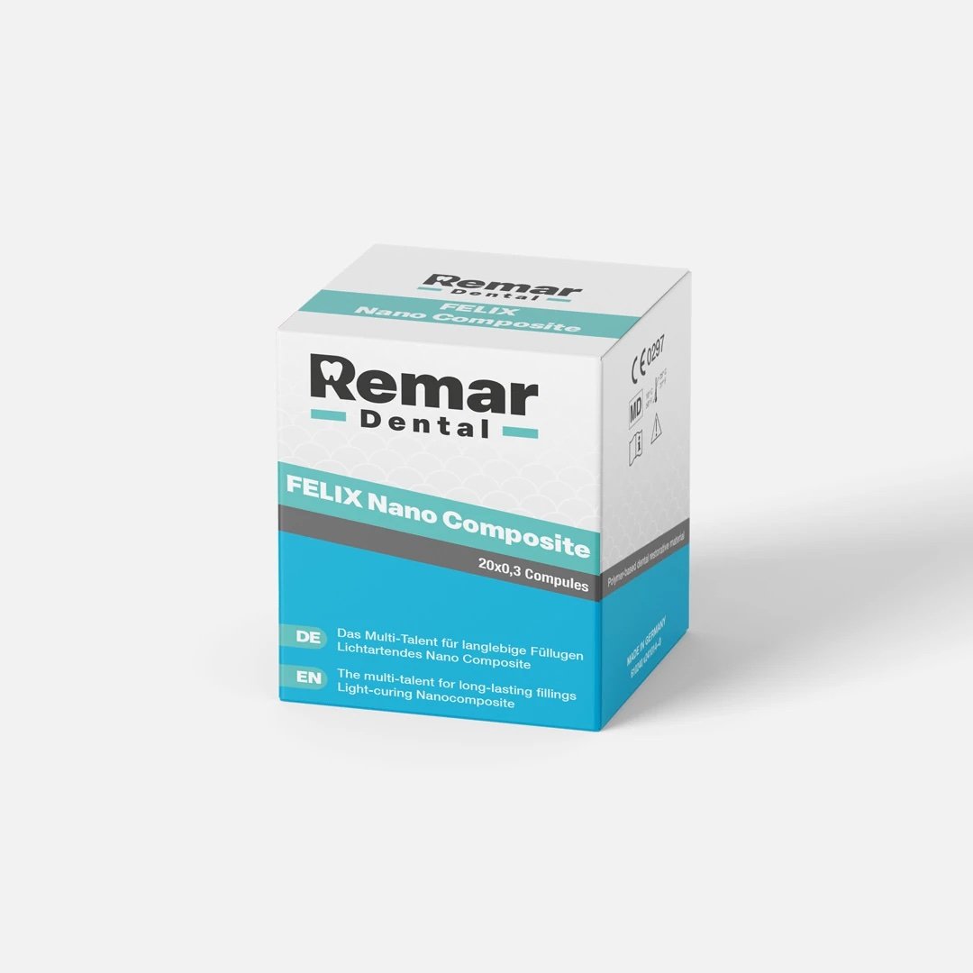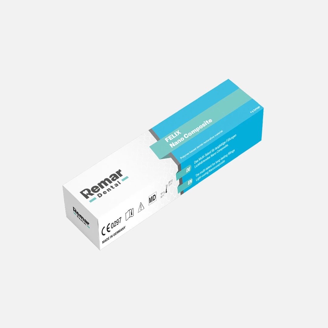 Felix Nano Composiet is een lichtuithardend nano-composiet met een ultrafijne, röntgenopake glasvulling voor adhesieve vullingsbehandelingen. Dankzij de ultrafijne vulstof kunnen uiterst homogene restauraties worden gemaakt, die door het speciale chameleon-effect perfect in kleur afgestemd kunnen worden voor een natuurlijke uitstraling.