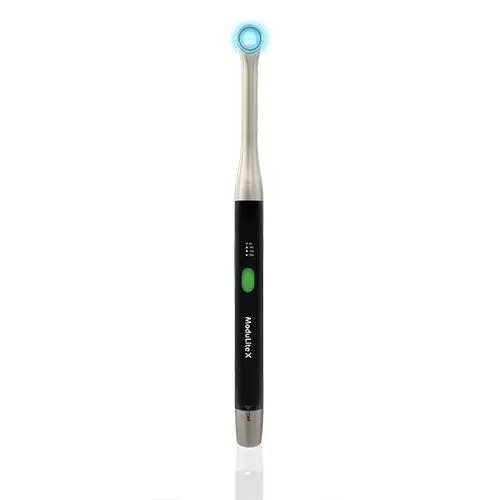 De ModuLite®X breedband-LED-uithardingslamp is een veelzijdig en krachtig hulpmiddel dat speciaal is ontworpen voor tandheelkundige professionals. Dankzij de op maat gemaakte LED met meerdere golflengten en een lichtbereik van 380-520 nm polymeriseert het apparaat op efficiënte wijze alle lichtuithardende tandheelkundige materialen, waaronder composietcementen onder porselein. De 10 mm collimatorlens en de 360° draaibare kop zorgen voor een nauwkeurige en effectieve uitharding, terwijl de innovatieve DETECT-modus helpt bij het opsporen van cariës door geïnfecteerd dentine te markeren. De ModuLite®X is vervaardigd uit hoogwaardig aluminium en roestvrij staal uit de lucht- en ruimtevaartindustrie. Het apparaat is duurzaam, ergonomisch en gebruiksvriendelijk en biedt extra gemak dankzij het draadloze ontwerp en de automatische slaapstand voor energie-efficiëntie.